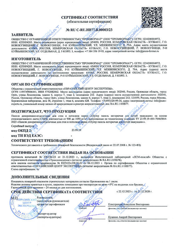 В повседневной жизни учебного заведения стеновые отделочные панели OLYMP покажут свою надежность, долговечность и неприхотливость, так как предельно просты в уходе, их достаточно регулярно чистить мягкими моющими средствами. Панели имеют высокий класс огнестойкости, соответствуют требованиям пожарной безопасности КМ0 (негорючие), что идеально подходит именно школьным и образовательным учреждениям.